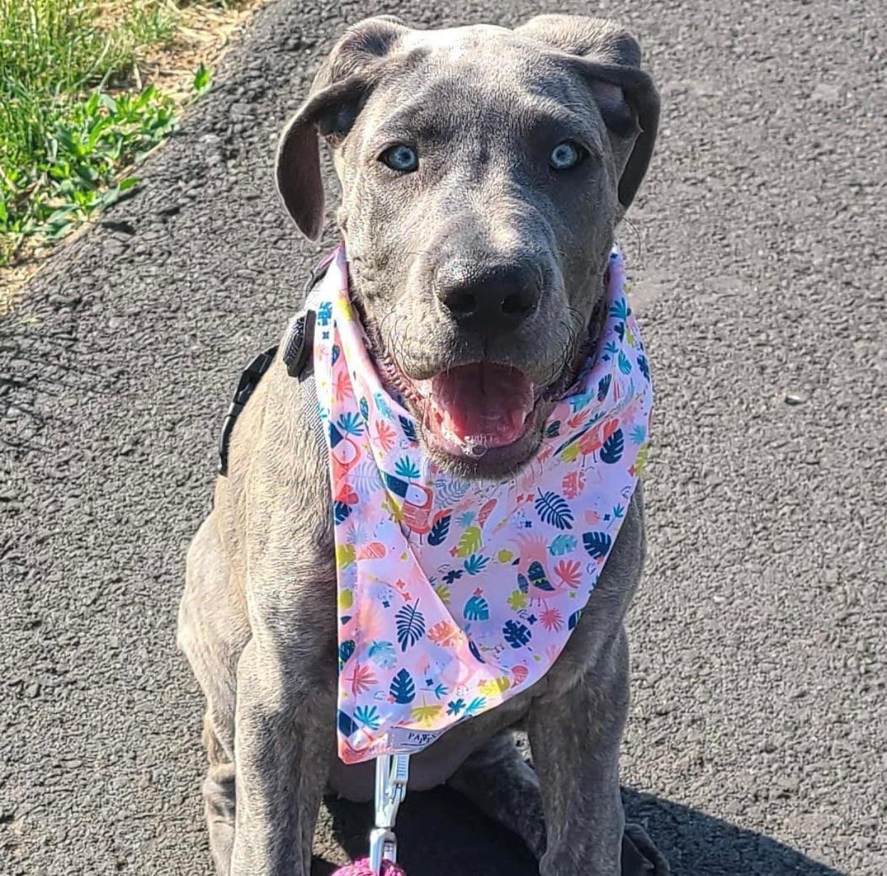 – Bandana is made as a square to allow it to be rolled or laid flat to fit your furbaby’s height.