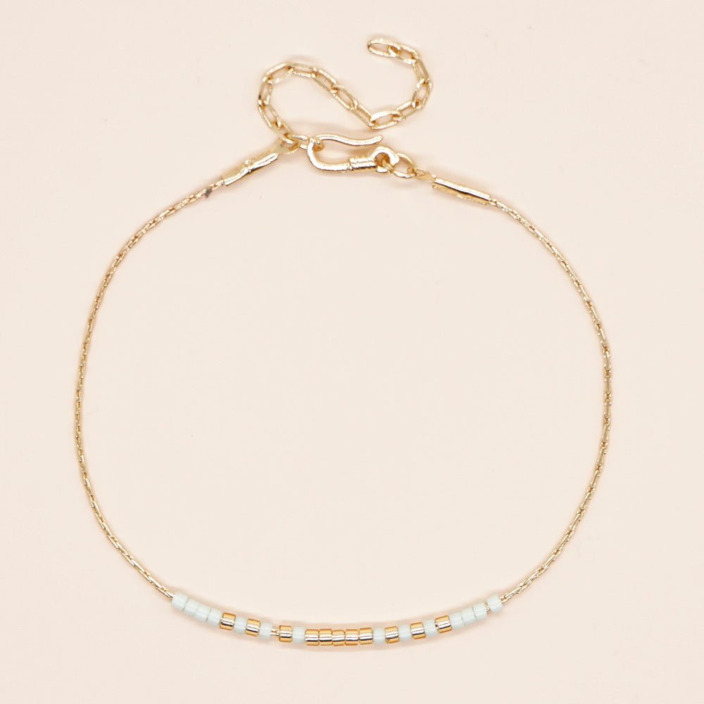 Delicate Gold double-strand bracelet made of a thin chain with a colorful beaded accent.