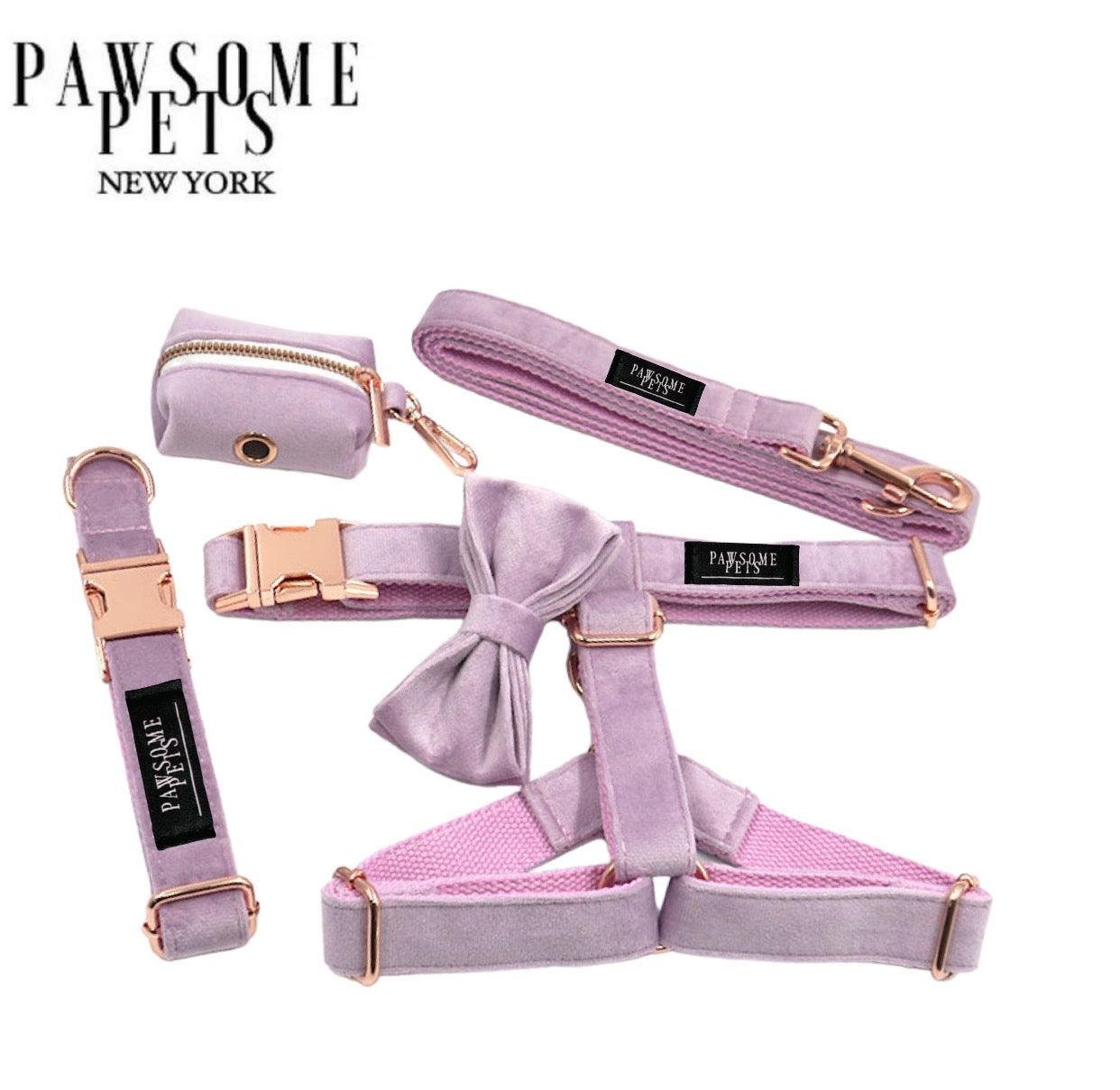 Our Pawsome Pets New York walking set that dogs love! Our soft and pets Step in harnesses, collars,leads,bowtie and waste bag holder are extremely durable and can be adjusted to fit cats,petite and big pups.